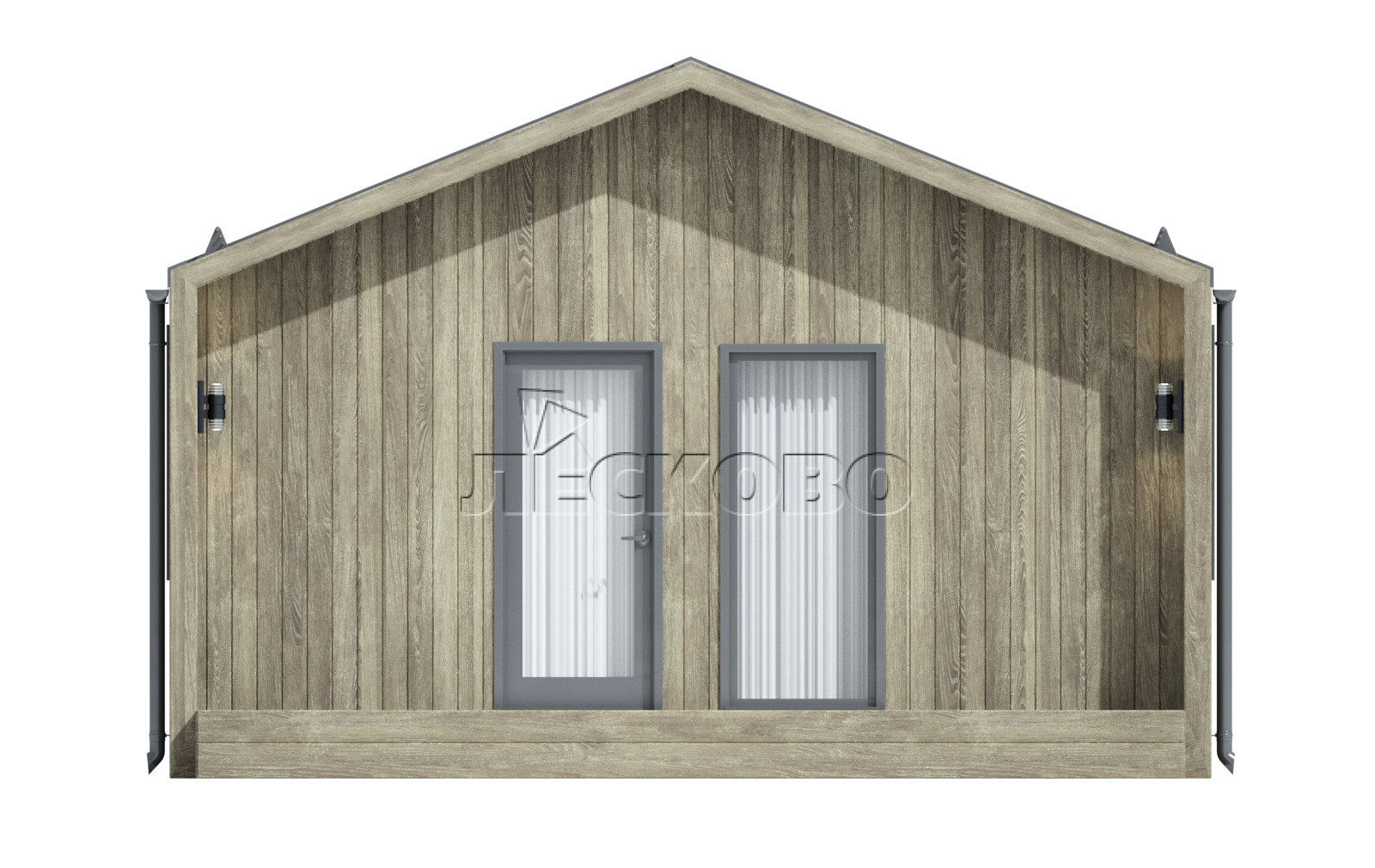 • Упаковка домокомплекта в пленку на поддоне, каждый щит в отдельной пачке.