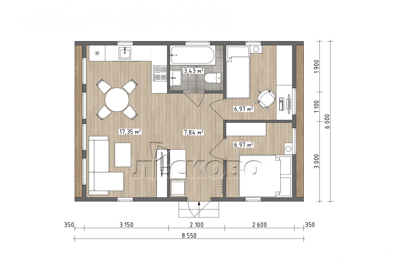 • Стены: каркас заводского изготовления из калиброванной доски 44х144 мм / 44х94 мм камерной сушки 12-14%,(костромская ель, сосна)
