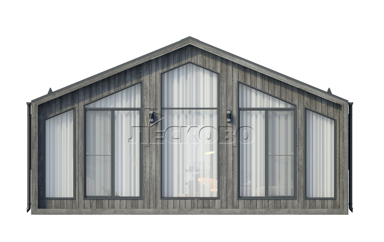 • Упаковка домокомплекта в пленку на поддоне, каждый щит в отдельной пачке.