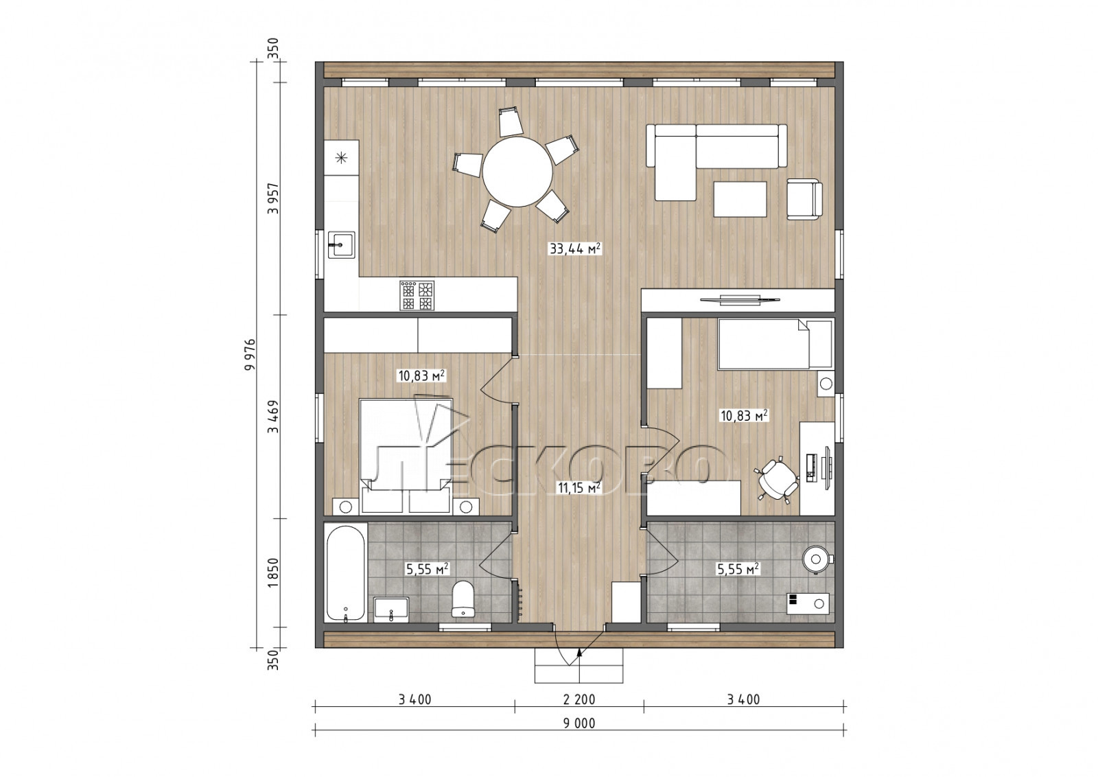 • Стены: каркас заводского изготовления из калиброванной доски 44х144 мм / 44х94 мм камерной сушки 12-14%,(костромская ель, сосна)