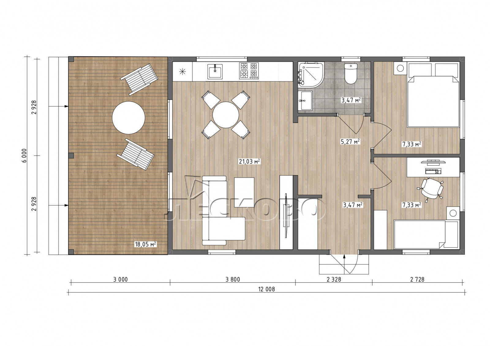 • Чистовые полы на верандах и балконах: палубная доска 35х144 мм сорт АБ,